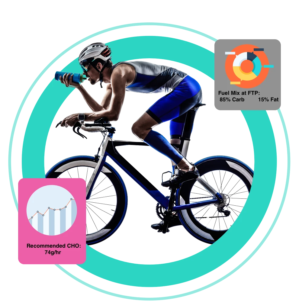 Our fuel strategy test works by using a safe and natural form of carbohydrate that contains a special type of carbon (called carbon-13). When you consume this carb mix and begin exercising, we measure the air you breathe out to see how much of that labeled carbon shows up in your exhaled CO₂. That tells us exactly how much of the drink or gel you’re actually using as fuel during your workout.