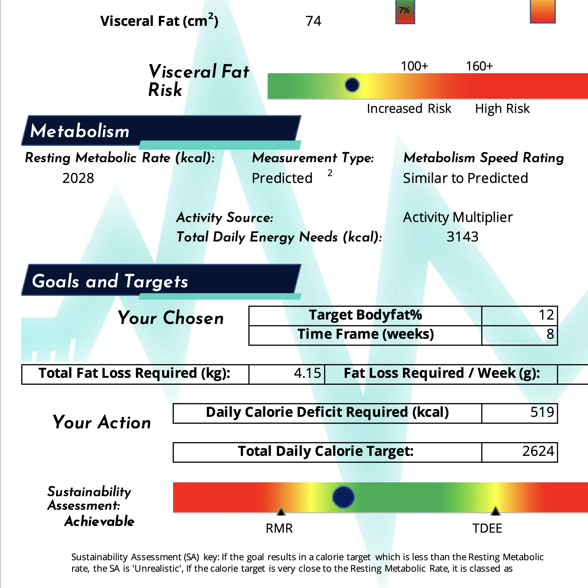 So as you see, a DEXA scan is so much more than a body fat figure. From the key figures in the scan, we can construct a full plan for you to follow which can include a total calorie target, advice on what goals should be the priority, and guidance on what you should be doing with your macros.